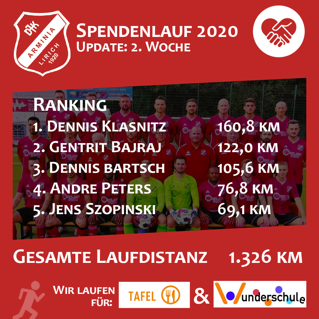 Halbzeit-Fazit: Schon fast 2.000,-€ hat unsere erste Mannschaft für die Tafel Oberhausen und den offenen Ganztag der Wunderschule erlaufen. Super Jungs, bleibt dran. An der Spitze hat sich Dennis „Klasse“ festgesetzt „Bizeps-Smiley”. Gentrit und Dennis sind ihm aber auf den Fersen. Unser Trainer Jens muss aufpassen, dass er nicht aus den Top-Five rutscht. „Lach-Smiley“ Vielleicht knacken wir diesen Monat die 5.000? Also weiter laufen für den guten Zweck (Hashtags: #spendenlauf #lirichläuft #guterzweck #tafeloberhausen #wunderschule)