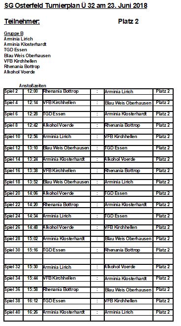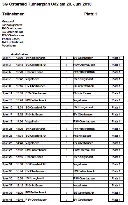 Die Spiele beginnen um 12:00 auf der Wittekindstraße 45/47, 46117 Oberhausen.