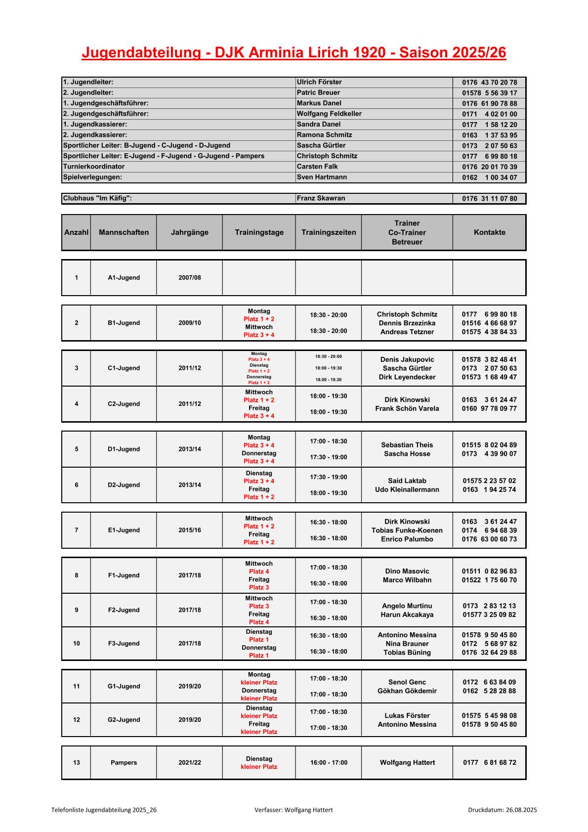 Telefonliste Jugendabteilung 2025_26-1 Trainingszeiten 2025 26d-1