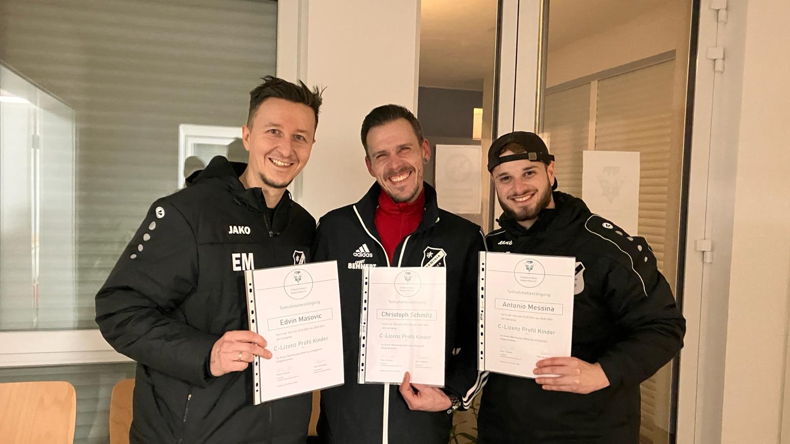 Edvin Masovic, Christoph Schmitz und Antonio Messina haben erfolgreich die C-Lizenz Profil Kinder erworben. Die Trainer haben eine GUTES Abschlussergebnis hingelegt was uns sehr stolzer macht.