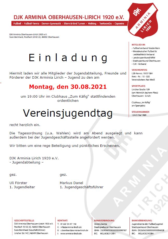 DJK Arminia Oberhausen-Lirich 1920 e.V.Sven Bernhard (Geschäftsführer)Liricher Str.14246049 Oberhausen