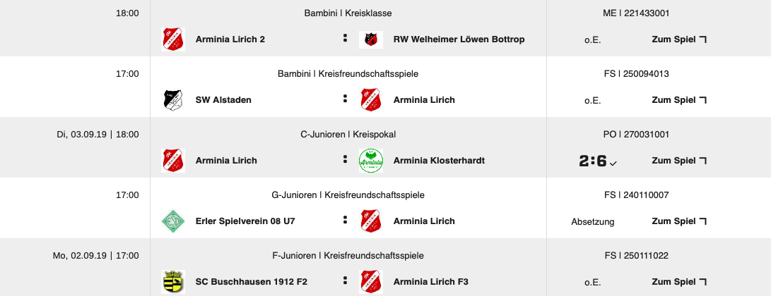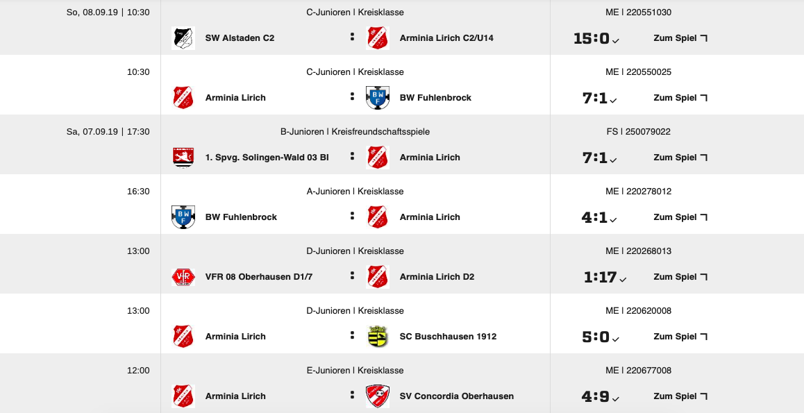 hier seht ihr eine Übersicht, über die Ergebnisse der vergangenen Jugendspiele der letzten Woche: