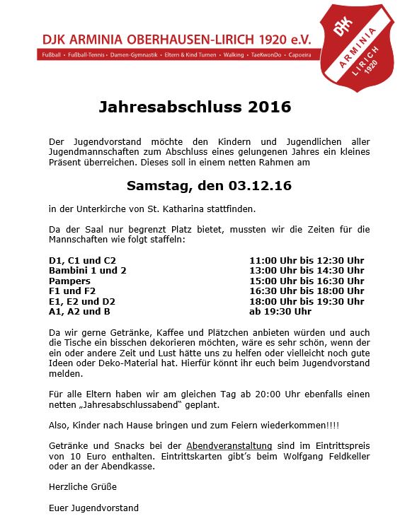 Zeiten für Samstag den 03.12.2016 stehen fest...