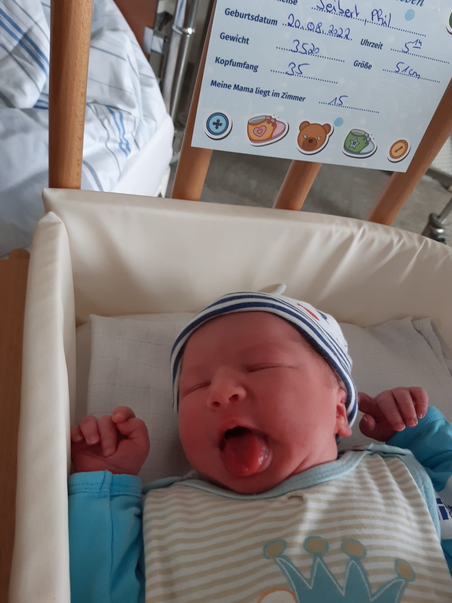 Am Samstag 20.08.2022 um 5:14 Uhr erblickte der kleine Phil Seibert mit einem Gewicht