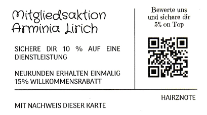 Zeigt einfach beim Bezahlen einen Nachweis der DJK Arminia OB-Lirich 1920 e.V. vor und genießt