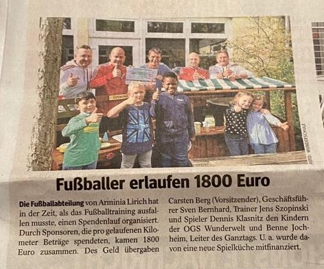Die Fußballabteilung von Arminia Lirich hatte in der Zeit, als das gemeinsame Fußballtraining ausfallen musste, einen großartigen Spendenlauf organisiert.