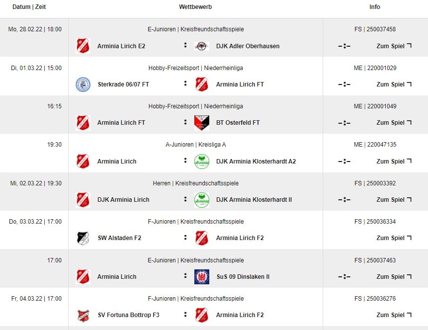 aktuellster Stand der Dinge, klick hier >Arminia Lirich (fussball.de)<
