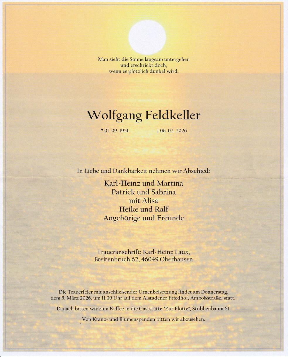 Die Beisetzung findet am 05.03.2026 um 11:00 Uhr auf dem Alstadener Friedhof Oberhausen statt.