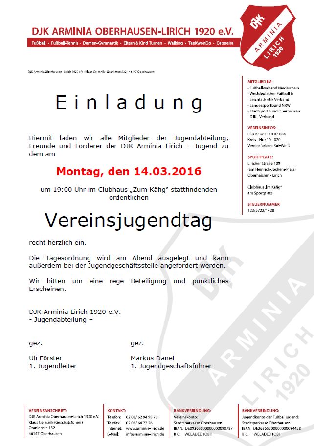 DJK Arminia Oberhausen-Lirich 1920 e.V.Sven Bernhard (Geschäftsführer)Liricher Str.14246049 Oberhausen